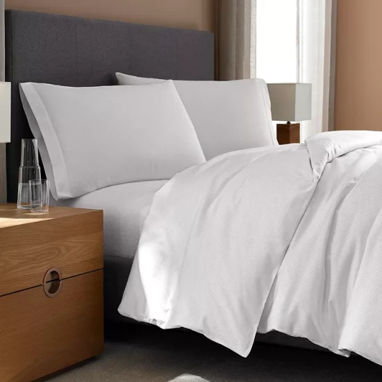 A softly checkered pattern offers textural simplicity with exceptional visual interest for Frette’s silky sateen bedding collection.