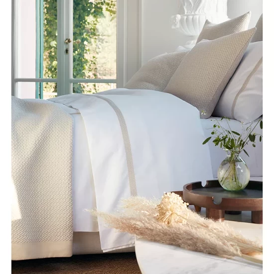 Add a fresh look to any bedroom with the Chevron Embroidery bedset collection from Frette, featuring a chevron design and quality cotton fabric.
