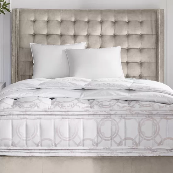 The Cortina Luxe Collection from Frette features soft, 100% cotton comforters filled with premium Polish goose down for an unparalleled sleep experience.