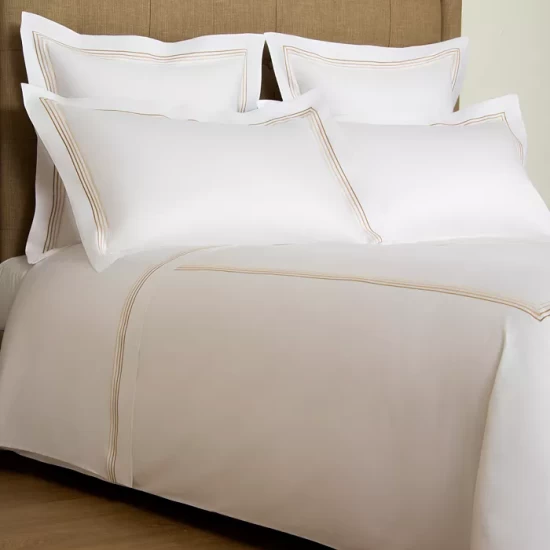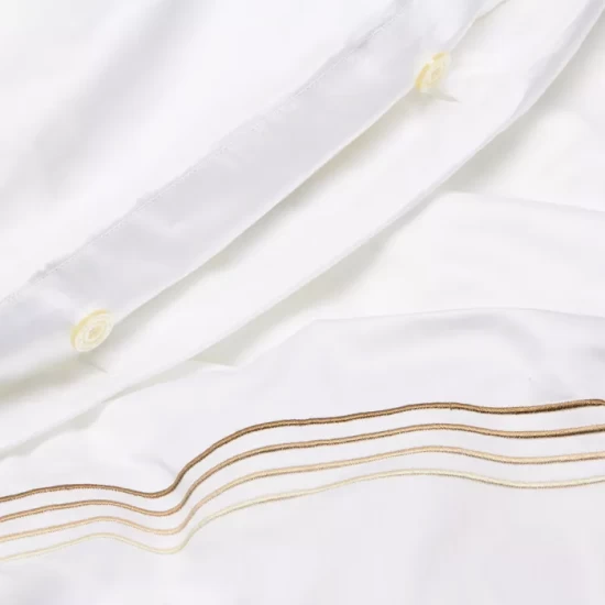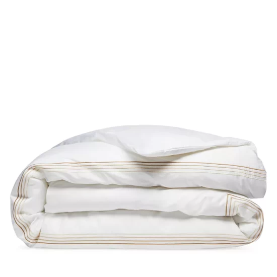 Four rows of ombré satin stitch embroidery lend a contemporary feel to this luxurious duvet cover by Frette, crafted in smooth, premium cotton sateen.