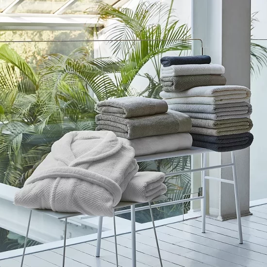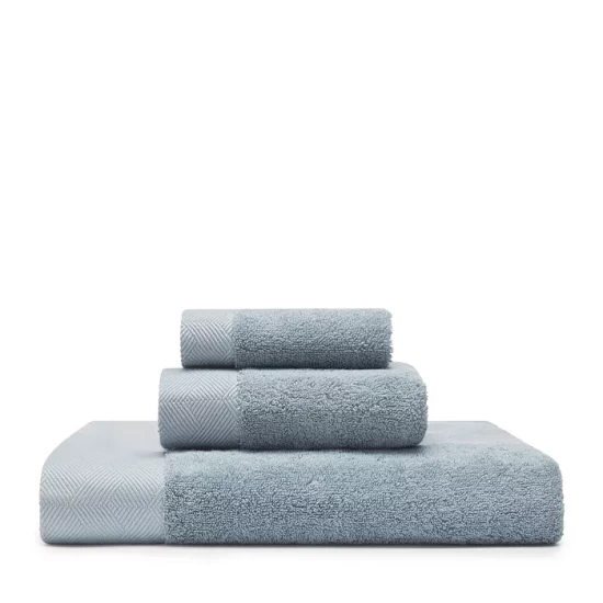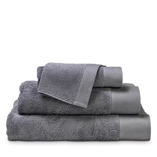 Luxuriously soft and absorbent, these Egyptian cotton bath towels by Frette feature a diamond-patterned jacquard border.