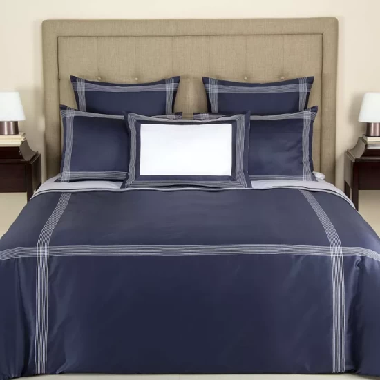 Crafted in sumptuous cotton sateen, the Hotel Porto collection by Frette boasts a striking aesthetic in elegant, solid shades with an embroidered stripe border.