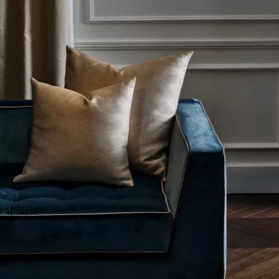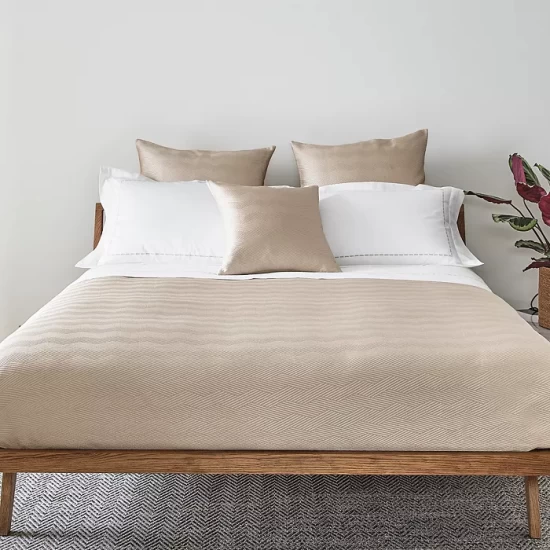 Cotton and silk form a geometric yarn-dyed weave with elegant drape and a rich hand for this elite Luxury Ray bedding collection by Frette.