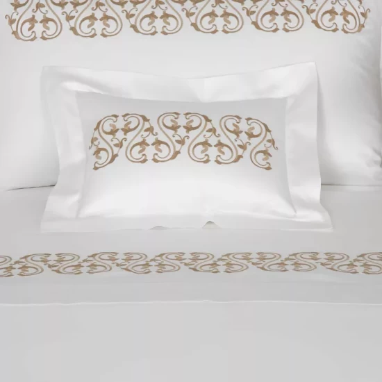 Explore timeless elegance with the Ornate Medallion bedding collection from Frette. Arabesque scrolls adorn cotton sateen, creating a look both fresh and classic.